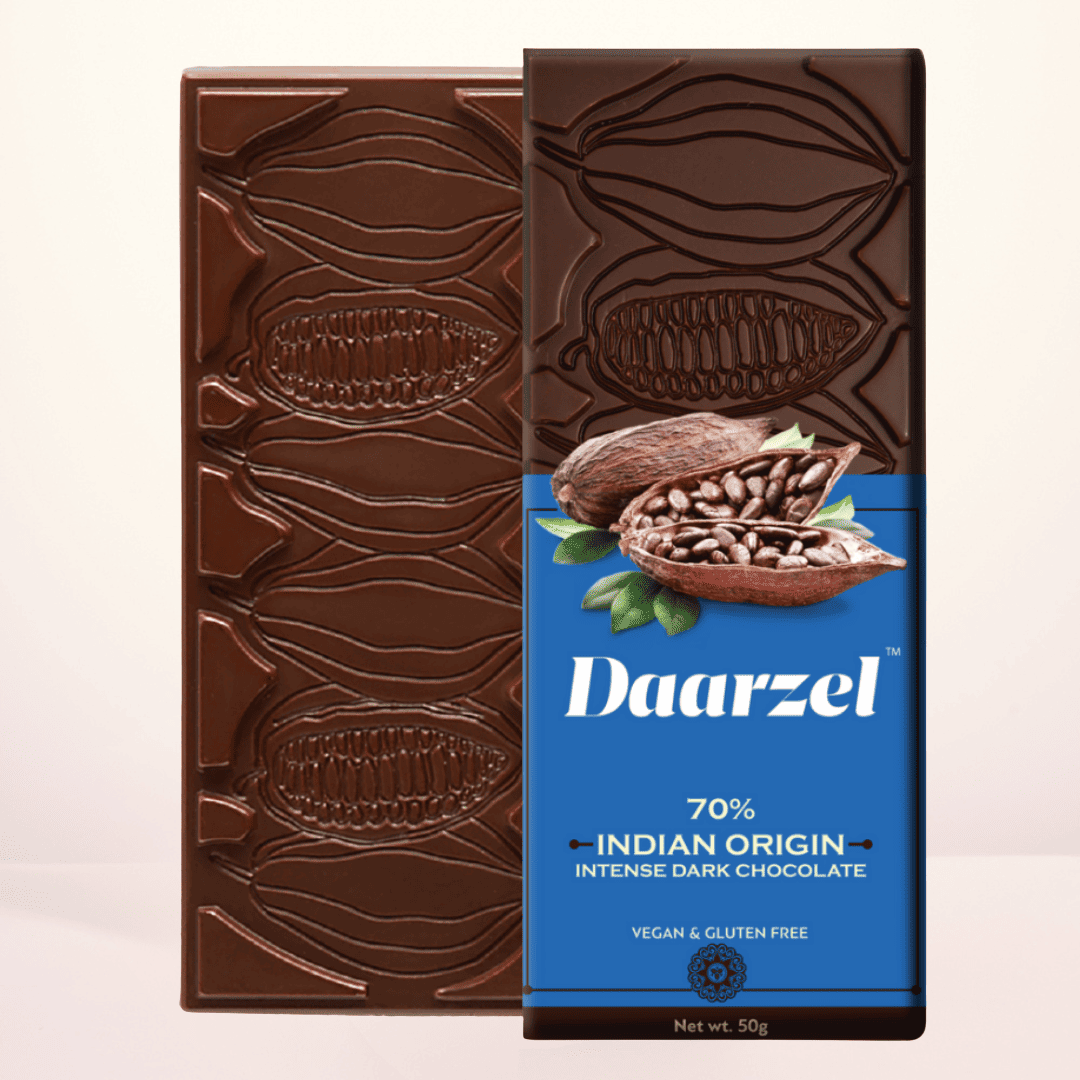 The taste of pure Indian richness wrapped up in one chocolate bar. This 70% Indian origin dark chocolate bar is made from high quality, fresh cocoa from our motherland, fermented in a clean environment to maintain its purity and churned into an untainted in-house dark chocolate. This vegan, gluten-free bar is everything you need in an indulgent dark chocolate treat.