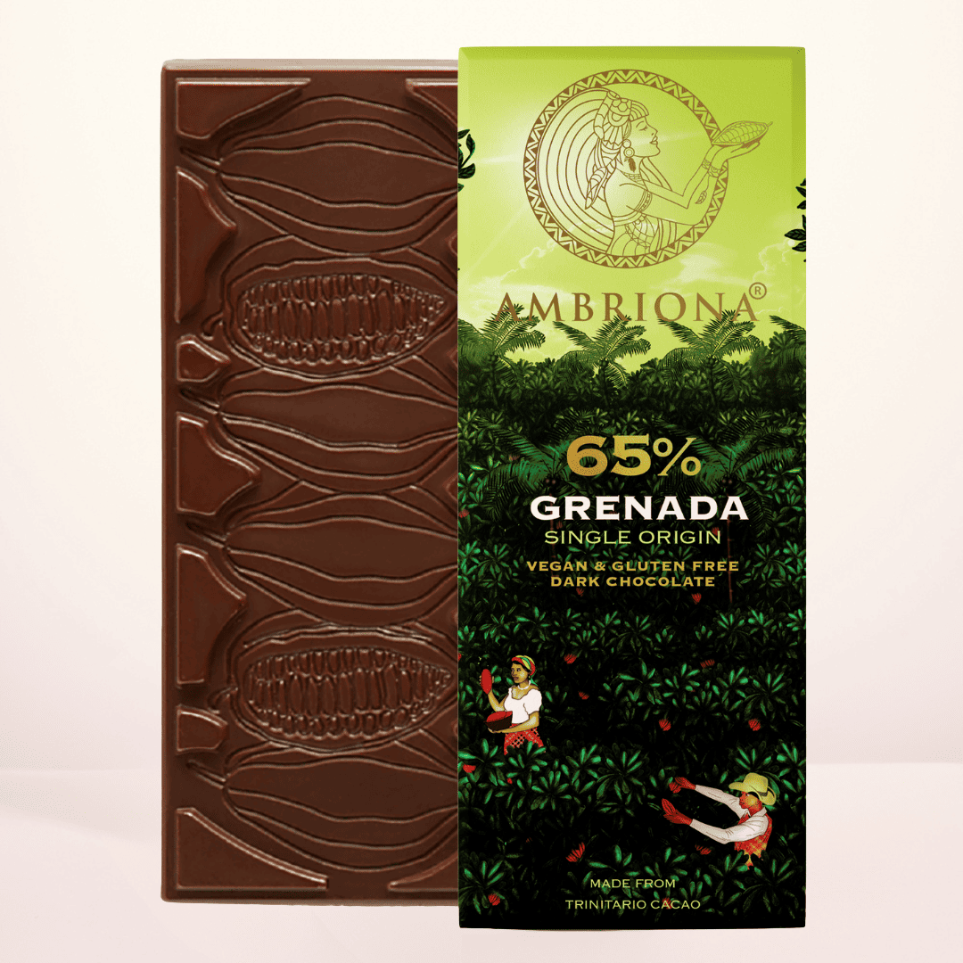 Emerging from the volcanic soil, the 65% Grenada is the strongest single origin cocoa bean we source. Straight from the beautiful Caribbean island, this vegan chocolate bar is the perfectly scrumptious dessert with its notes of roasted cacao, honey and fruity hints that bring the fresh citrus bursts to every bite.