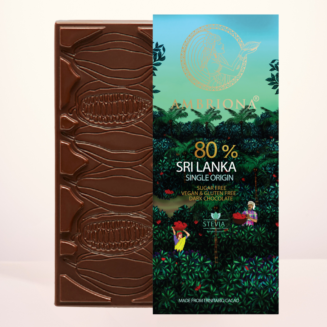 From the island of Sri Lanka, we bring to you the distinct acidic sweetness that you just cannot miss. This 80% Sri Lanka dark chocolate bar has strong citrus flavours, a hint of mild coffee humming in the back and a classic woody undertone, making this vegan, gluten-free chocolate your new dessert delight.