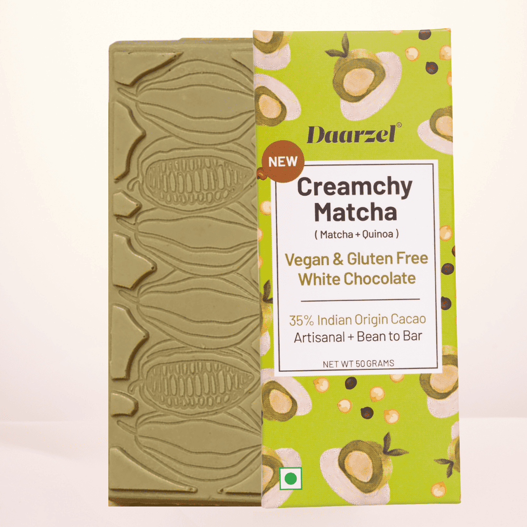 Cacao Butter, Organic Cane Sugar, Cashew Milk, Chicory Root Powder, Quinoa Puffs, Matcha Powder, Real Vanilla Extract