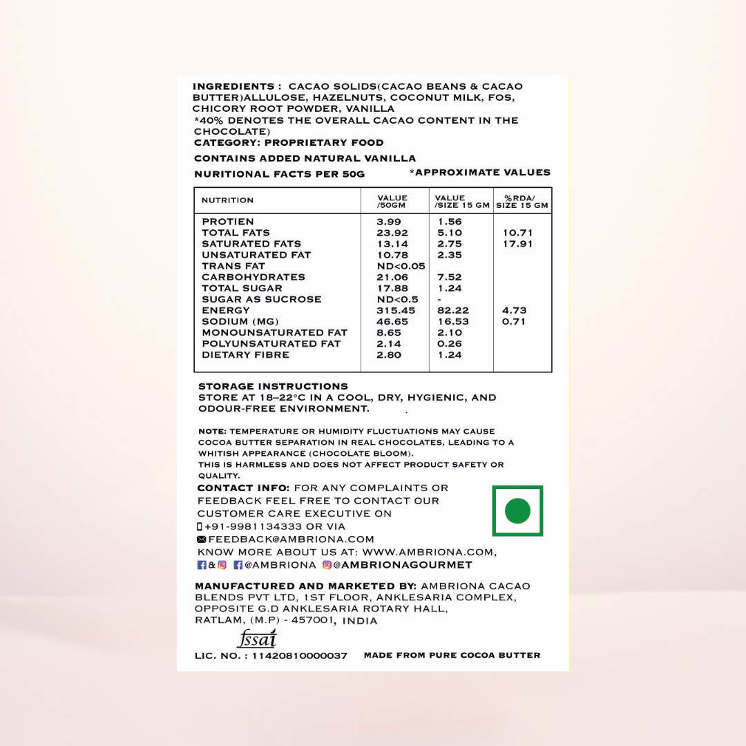 Rich, intense cocoa meets a satisfying hazelnut crunch—without sugar. Sweetened with next-gen allulose, this 70% dark chocolate delivers a smooth, full-bodied taste with no bitter aftertaste. Pure indulgence, redefined.